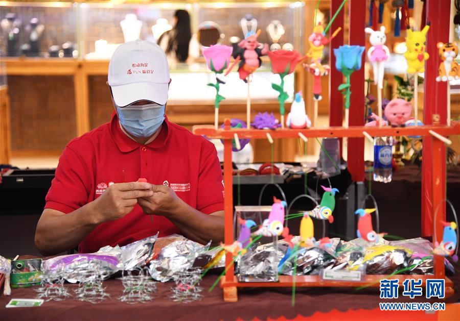 8月8日,在第十八屆中關(guān)村國(guó)際美食節(jié)美食美酒嘉年華文創(chuàng)非遺展示區(qū),工作人員制作面塑。新華社記者 任超 攝