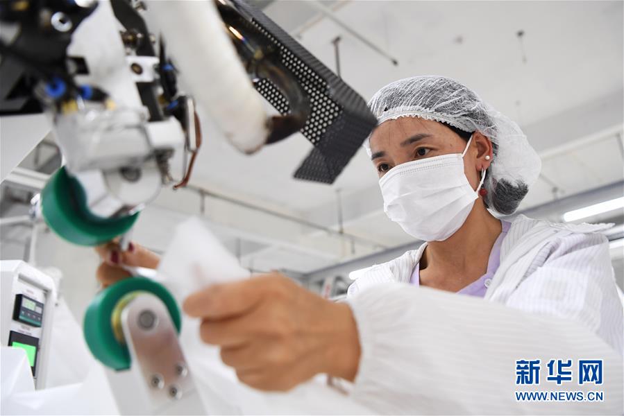 8月9日,甘肅拓奇扶貧車間的員工在服裝加工生產線上作業(yè)。甘肅拓奇扶貧車間位于甘肅省臨夏回族自治州積石山縣,是依托東西部扶貧協(xié)作平臺引進的服裝加工企業(yè)。扶貧車間建成投產以來帶動就業(yè)近300人,其中吸納建檔立卡貧困戶就業(yè)110人,實現(xiàn)了貧困群眾就地就近就業(yè)增收的目的,為助推當?shù)孛撠毠约翱h域經濟發(fā)展發(fā)揮了重要作用。新華社記者陳斌攝。