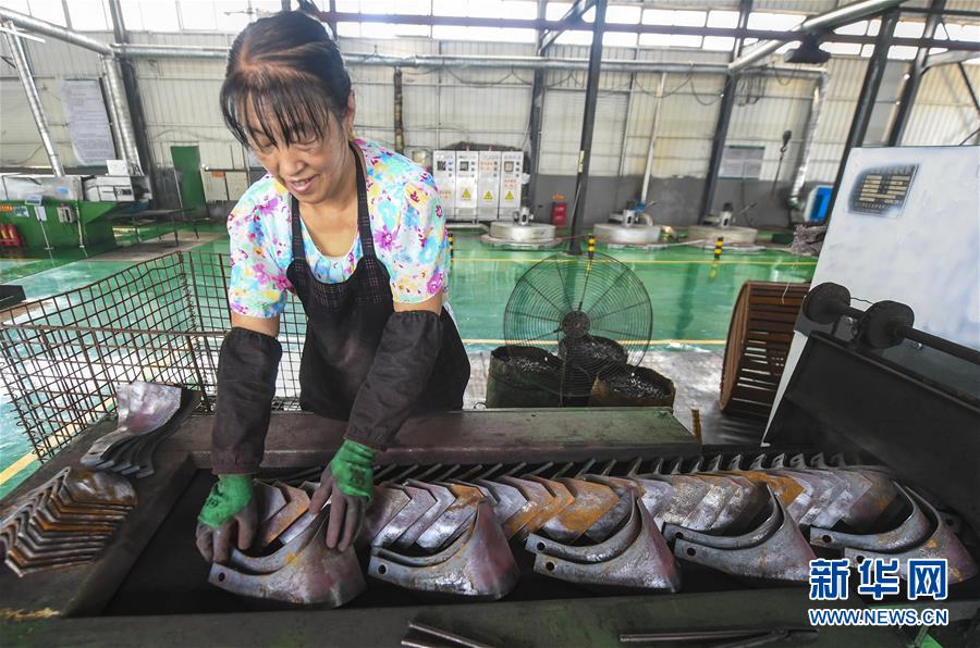 8月9日,河北大城縣南趙扶鎮(zhèn)一家旋耕機(jī)刀片生產(chǎn)企業(yè)員工在生產(chǎn)線上作業(yè)。河北省大城縣南趙扶鎮(zhèn)是該縣農(nóng)機(jī)配件行業(yè)傳統(tǒng)生產(chǎn)基地。疫情以來,南趙扶鎮(zhèn)引導(dǎo)企業(yè)做好風(fēng)險防范,在農(nóng)機(jī)配件行業(yè)與世界各地客商及品牌開展方式多樣的合作,出口訂單不降反升。截至目前,該縣農(nóng)機(jī)配件行業(yè)出口總銷量達(dá)8000余萬元,較去年同期增長30%。新華社記者李曉果攝。