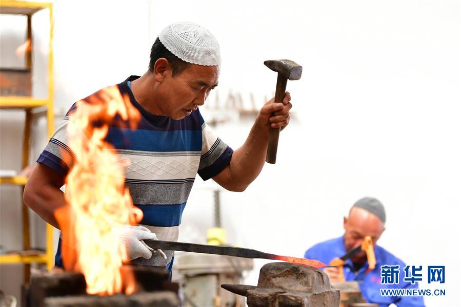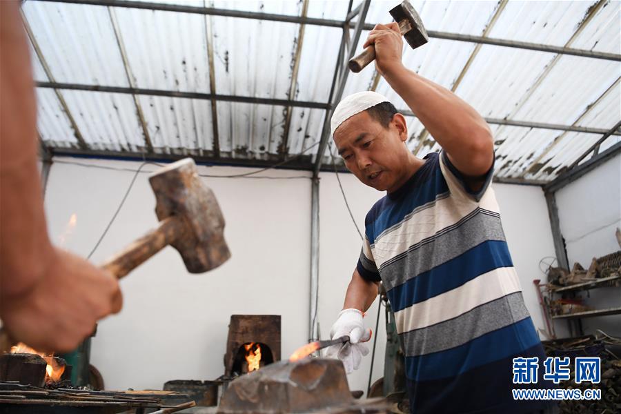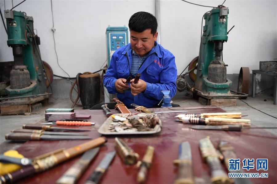 近年來,甘肅省臨夏回族自治州積石山縣通過建設保安腰刀鍛制技藝扶貧車間和工藝坊等形式,積極發(fā)展特色非遺經(jīng)濟,讓貧困群眾通過鍛制腰刀,傳承保護傳統(tǒng)技藝,拓寬收入渠道,助力脫貧致富。