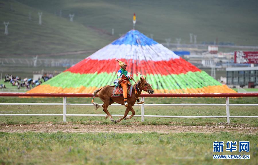 8月10日,騎手馳騁在當(dāng)雄縣賽馬場。新華社記者晉美多吉攝。