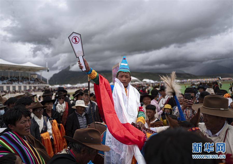 8月10日,羊八井鎮(zhèn)桑巴薩三組格桑占堆家的馬獲得“當(dāng)吉仁”賽馬五公里馬長跑比賽第一名。新華社記者普布扎西攝。