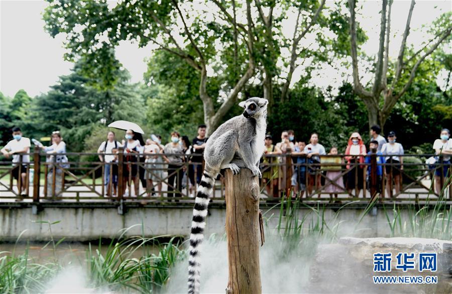 8月11日,上海動物園的環(huán)尾狐猴在“地噴”營造的水霧中玩耍。當(dāng)日,上海最高溫度達到35攝氏度,上海動物園開啟園內(nèi)安裝的各種噴淋裝置,讓動物們防暑降溫,樂享清涼。新華社記者張建松攝