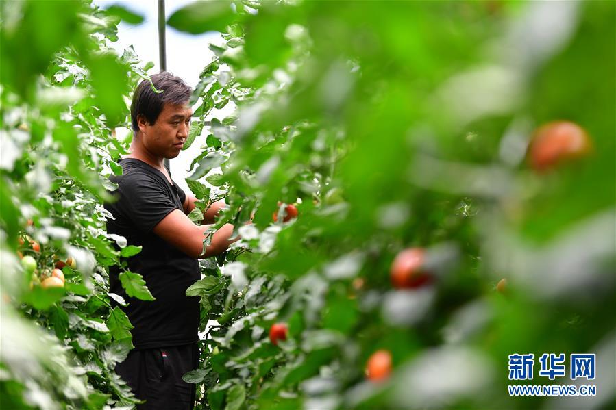 8月11日,在甘肅省臨夏回族自治州臨夏縣先鋒鄉(xiāng)前韓村,搬遷戶蔣元財在日光溫室內(nèi)采摘西紅柿。近年來,甘肅省臨夏回族自治州臨夏縣把易地扶貧搬遷作為打贏脫貧攻堅戰(zhàn)的重要任務,科學推進易地扶貧搬遷和脫貧攻堅工作。為了讓搬遷群眾能夠安居樂業(yè),當?shù)卣⒅胤龀趾罄m(xù)產(chǎn)業(yè)發(fā)展,引導搬遷群眾發(fā)展日光溫室、布鞋加工、觀光農(nóng)業(yè)、特色種養(yǎng)殖等產(chǎn)業(yè),幫助搬遷群眾實現(xiàn)就近就業(yè)、拓寬增收渠道,確保搬遷群眾“搬得出、穩(wěn)得住、有事做、能致富”。新華社記者陳斌攝