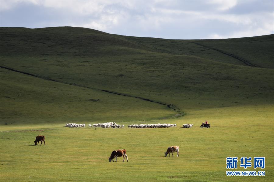 牧民在克什克騰旗貢格爾草原放牧(8月11日攝)??耸部蓑v旗位于內(nèi)蒙古自治區(qū)赤峰市西北部,境內(nèi)的湖泊、河流、草原、森林等自然景觀,讓人們流連忘返。新華社記者劉磊攝
