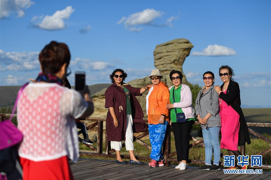 游客在克什克騰石陣景區(qū)拍照留影(8月11日攝)。克什克騰旗位于內(nèi)蒙古自治區(qū)赤峰市西北部,境內(nèi)的湖泊、河流、草原、森林等自然景觀,讓人們流連忘返。新華社記者劉磊攝