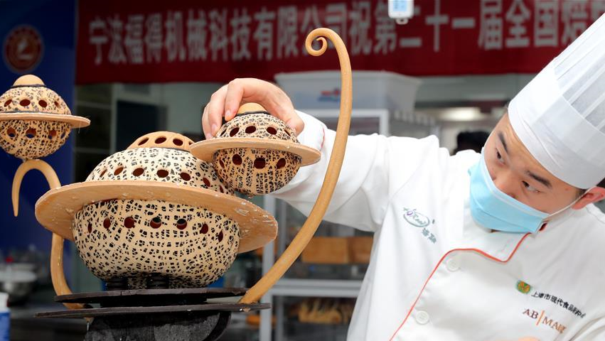 當(dāng)日,第二十一屆全國(guó)焙烤職業(yè)技能競(jìng)賽上海賽區(qū)選拔賽,在上海市現(xiàn)代食品職業(yè)技能培訓(xùn)中心舉行,來自上海、江蘇、浙江等地的近60名焙烤行業(yè)技師,在藝術(shù)面包、傳統(tǒng)糕點(diǎn)、糖藝和藝術(shù)巧克力等項(xiàng)目中進(jìn)行比拼,在充滿焙烤香氣的賽場(chǎng)上展現(xiàn)技藝。