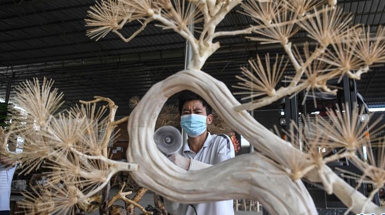 8月5日,侯景偉在葫蘆上進(jìn)行創(chuàng)作。經(jīng)過多年潛心研究,他將浮雕和烙畫工藝相結(jié)合,通過拋光、起稿、雕刻、烙燙、套色等十余道工藝,制作展現(xiàn)傳統(tǒng)文化、民俗故事的葫蘆工藝品。