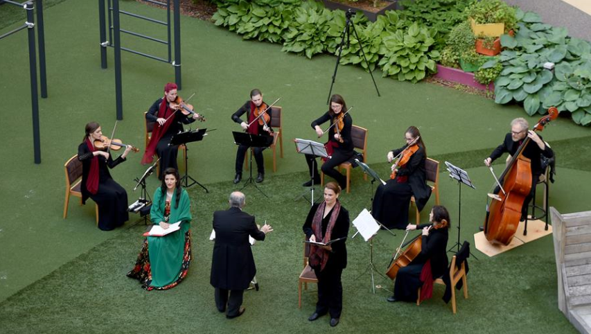 5月30日,奧地利首都維也納的一家名為“時代精神”的酒店為迎接“解封”后恢復(fù)營業(yè),在其庭院內(nèi)舉辦“窗口音樂會”。