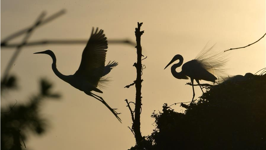 江西南昌“鷺鳥王國”生機(jī)勃勃