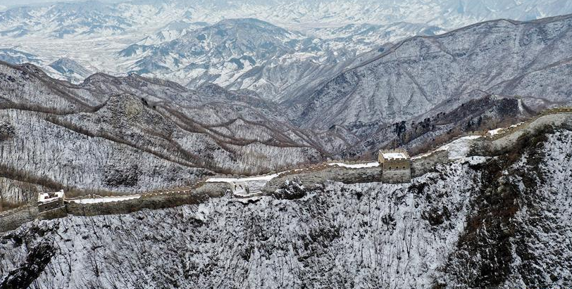 近日,北京迎來降雪天氣。雪后的箭扣長(zhǎng)城內(nèi)外,惟余莽莽,蔚為壯觀。