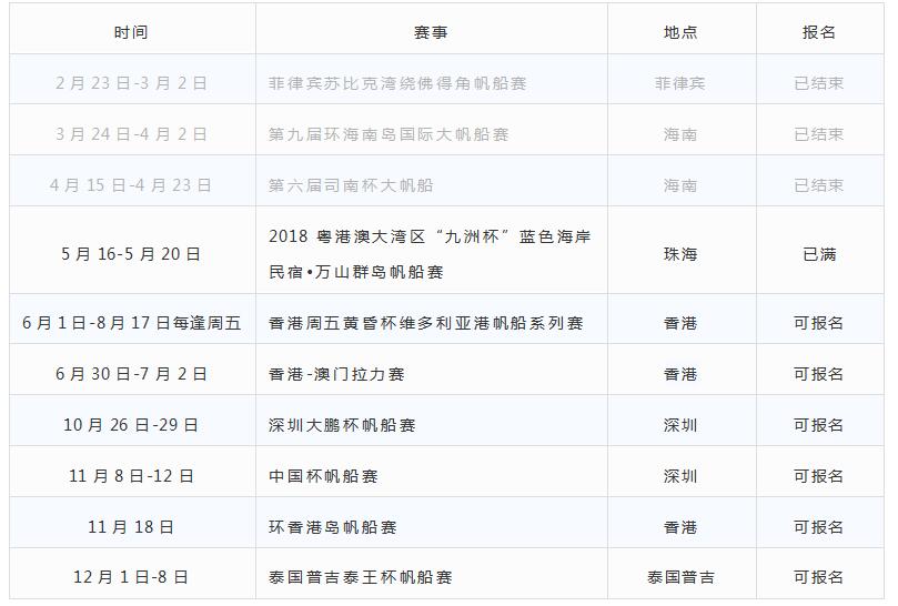 2018年已經(jīng)參加了三場(chǎng)國(guó)際大型帆船賽事,2月份在菲律賓舉辦的蘇比克灣繞佛得角帆船賽、3月份的環(huán)海南島帆船賽以及4月份的司南杯帆船賽,亞太航海三場(chǎng)比賽全部豪取桂冠!接下來(lái)的5-12月,亞太航海還將參加7場(chǎng)國(guó)際帆船賽事,繼續(xù)創(chuàng)造普通人的航海傳奇!同時(shí)接受嘉賓船員體驗(yàn)報(bào)名、企業(yè)贊助。