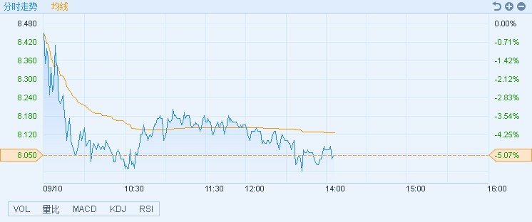 智通財經(jīng)APP獲悉,金蝶國際(00268)遭聯(lián)席券商花旗大量拋售,股價下挫,截至14時05分,跌5.07%,報價8.05港元,成交額2.17億。