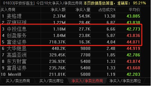 整體而言,中投信息、創(chuàng)盈服務(wù)、富途證券三大聯(lián)席券商合計(jì)凈買入平安好醫(yī)生約300萬港元,占其全天成交額的17%,內(nèi)地資金一下已經(jīng)成為該股的主要參與者。