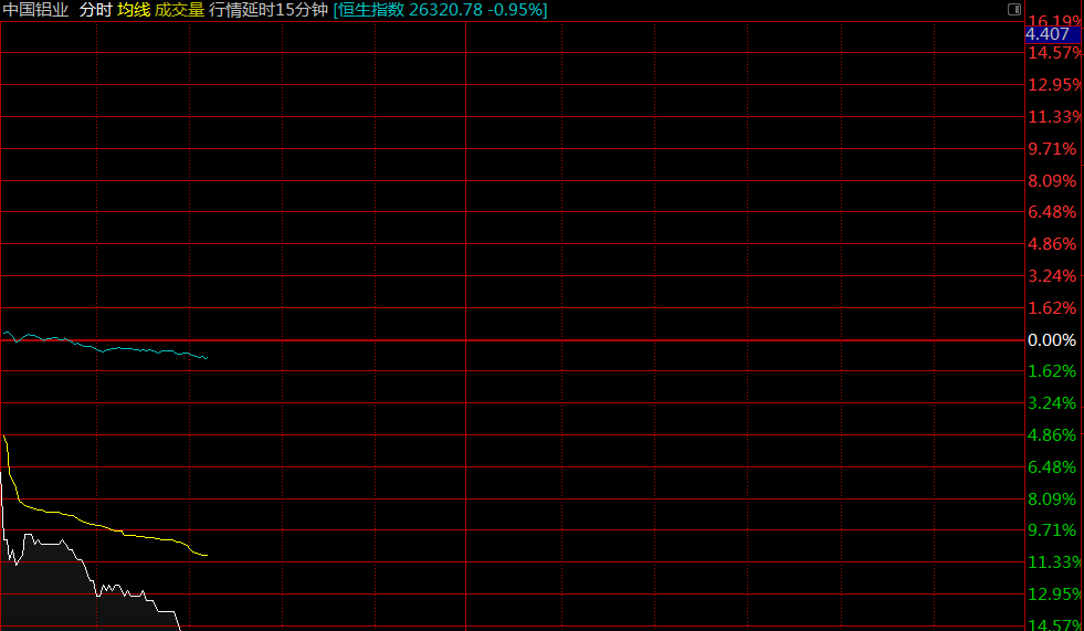 智通財經APP獲悉,中國鋁業(yè)(02600)H股早盤急挫12%,現價與A股表現背馳,A股漲0.99%。截至9時58分,跌12.27%,報價3.36港元,成交額1.23億。