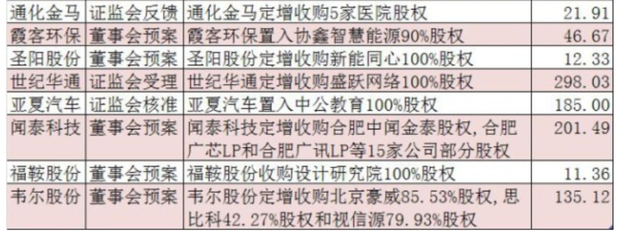 并購重組經(jīng)歷近二年的低谷后,政策由緊到松,目前快速回暖,概念股逐步走強,近日又有多家公司公布并購方案;