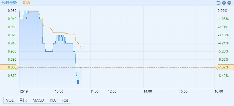 智通財(cái)經(jīng)APP獲悉,希望教育(01765)盤中一度跌至0.86港元,再創(chuàng)上市新低,月內(nèi)跌幅超三成。截至11時(shí)14分,跌7.37%,報(bào)價(jià)0.88港元,成交額2003.78萬。