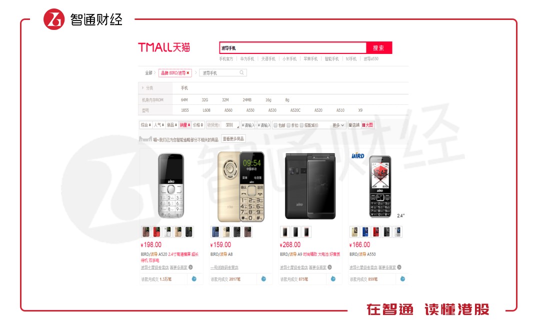 當(dāng)然,也有部分手機(jī)品牌存活下來(lái)的,比如1992年成立的波導(dǎo)手機(jī),以及2002年成立的天語(yǔ)手機(jī),其中波導(dǎo)手機(jī)在2004-2005創(chuàng)造輝煌,當(dāng)時(shí)年銷售突破1000萬(wàn)臺(tái),但2006年后市場(chǎng)份額急速下降,目前雖有機(jī)型在賣,但少人問津。在天貓上,波導(dǎo)手機(jī)最大的月成交筆數(shù)為1.3萬(wàn)筆,天語(yǔ)手機(jī)為4萬(wàn)筆。