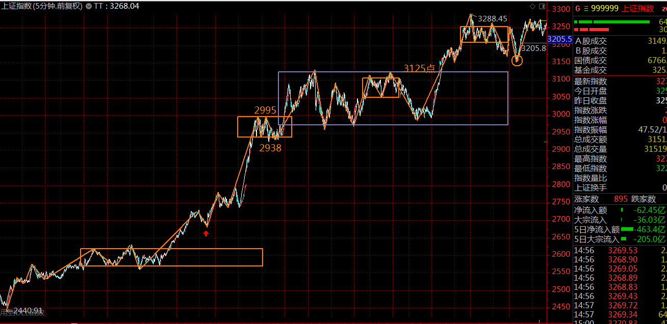 上證指數(shù)依然相對(duì)強(qiáng)勢(shì),可以看到,周二的恐慌低點(diǎn)正好對(duì)應(yīng)了30分鐘的第三類買點(diǎn),后續(xù)在前高位置止步不前需引起注意,這里已進(jìn)入了背馳段,如若周一不能強(qiáng)勢(shì)拉起,則需謹(jǐn)防大盤這波春季上漲趨勢(shì)終結(jié)的風(fēng)險(xiǎn)。