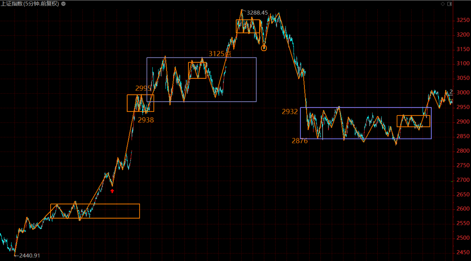 市場已進入下跌趨勢的初期,本周初將會反彈,構(gòu)建五分鐘上漲趨勢的第二類賣點,在3050附近沒有獲利了結(jié)的投資者,注意這次賣出良機,降低倉位以防范風(fēng)險。耐心等待市場回到2900附近再行布局。
