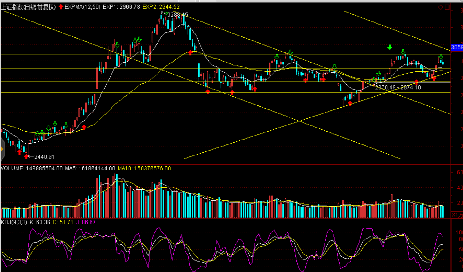技術(shù)面:延續(xù)上行趨勢,短期調(diào)整分時(shí)指標(biāo),60分鐘KDJ重回低位;滬綜指今日支撐2970點(diǎn)、壓力2993點(diǎn)。