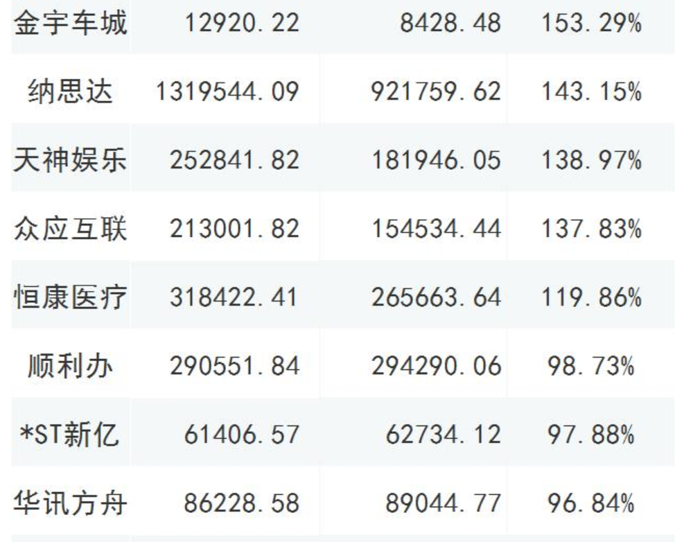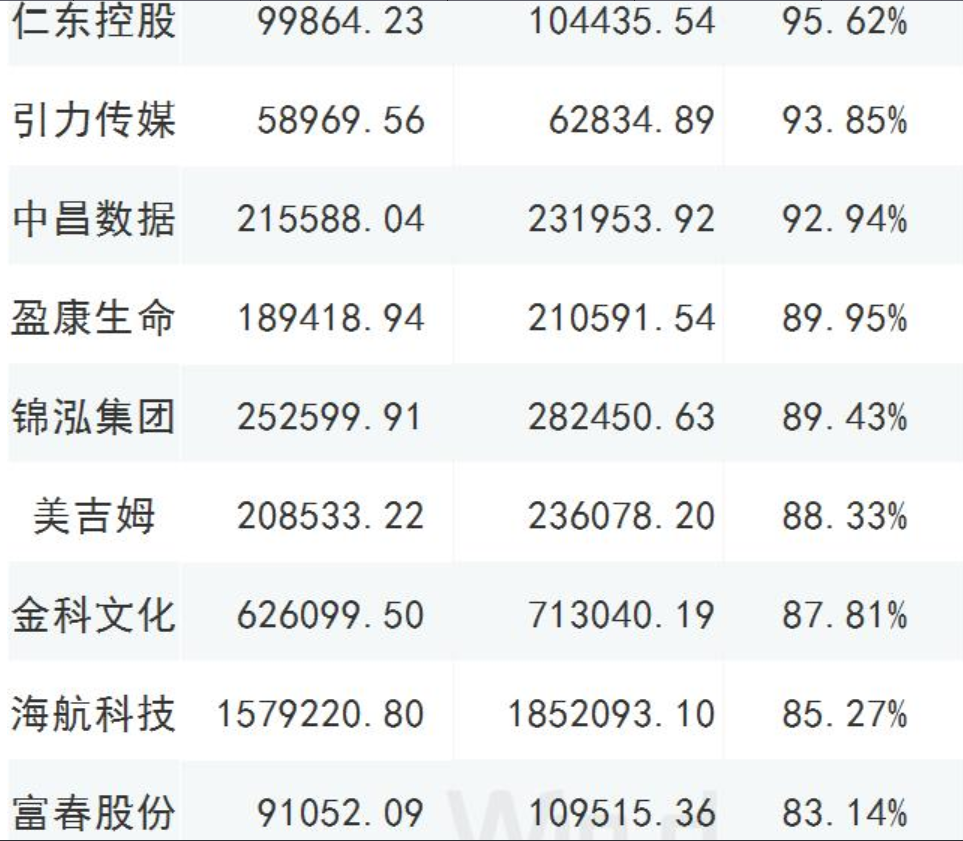 截至2019年三季報(bào)商譽(yù)占凈資產(chǎn)比重大于70%的公司,共有46家;12家的比值超過了百分百,以下列舉部分超過80%的公司;謹(jǐn)慎年終商譽(yù)減值風(fēng)險爆發(fā);
