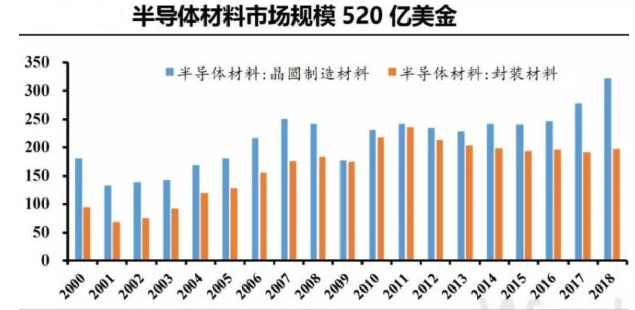 中國大陸和中國臺(tái)灣為全球半導(dǎo)體材料主要市場(chǎng),未來需求將持續(xù)增加。至2018年,中國臺(tái)灣和中國大陸半導(dǎo)體材料市場(chǎng)分別為790億元和582億元,在全球占比分別為22.0%和16.3%,合計(jì)共38.3%。未來隨著晶圓廠投產(chǎn)量持續(xù)增加,市場(chǎng)規(guī)模將進(jìn)一步擴(kuò)大。