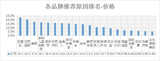 排名第一的是百蓮凱,價格推薦率為23.1%;其次是克麗緹娜,推薦率為20.3%;第三名是美萊,推薦率均為17.4% 。
