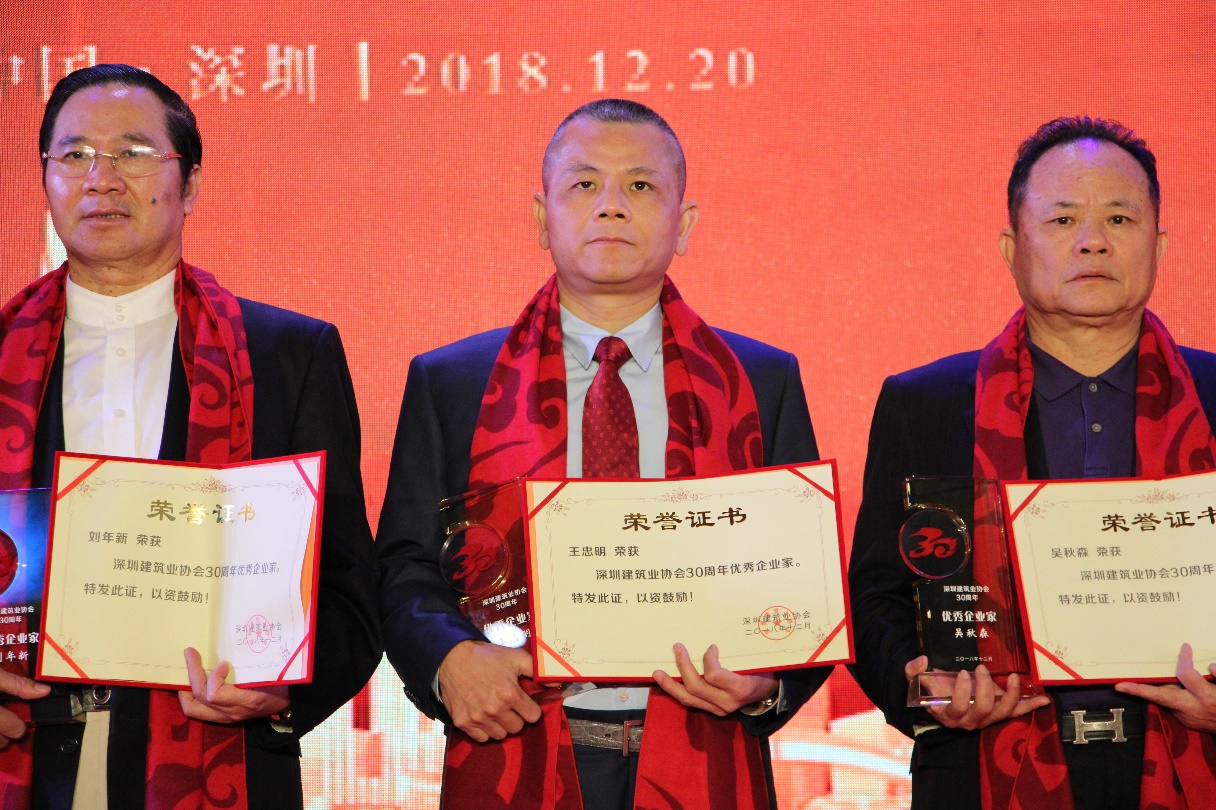 本次慶典上,深圳建筑業(yè)協(xié)會(huì)表彰了一批在促進(jìn)、推動(dòng)深圳建筑行業(yè)發(fā)展中作出重大貢獻(xiàn)的優(yōu)秀企業(yè)和個(gè)人,鼓勵(lì)他們不斷探索創(chuàng)新,共同創(chuàng)造深圳建筑業(yè)的輝煌。深圳市建被授予“30周年優(yōu)秀施工企業(yè)”;翠林投資集團(tuán)董事長(zhǎng)王忠明榮獲深圳建筑業(yè)協(xié)會(huì)“30周年優(yōu)秀企業(yè)家”稱(chēng)號(hào);深圳市建員工盧燦光、郝崇民榮獲“30周年優(yōu)秀項(xiàng)目經(jīng)理”稱(chēng)號(hào);深圳市建老員工李炳坤榮膺“30周年優(yōu)秀工匠”稱(chēng)號(hào)。