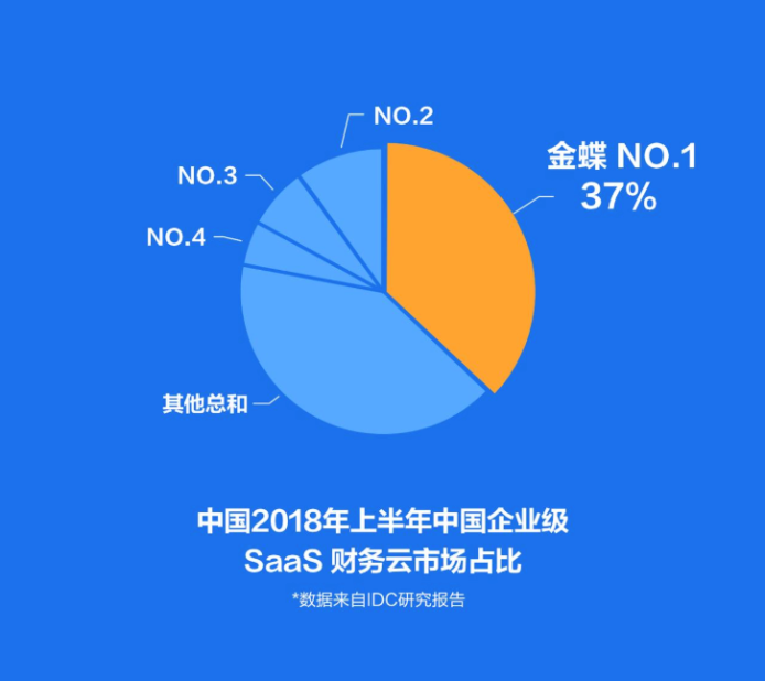 IDC 《中國(guó)半年度企業(yè)級(jí) S aaS ERM 應(yīng)用軟件市場(chǎng)跟蹤報(bào)告》,金蝶在2018上半年 SaaS ERM 和 SaaS 財(cái)務(wù) 云 市場(chǎng) 占比繼續(xù)蟬聯(lián)第一。