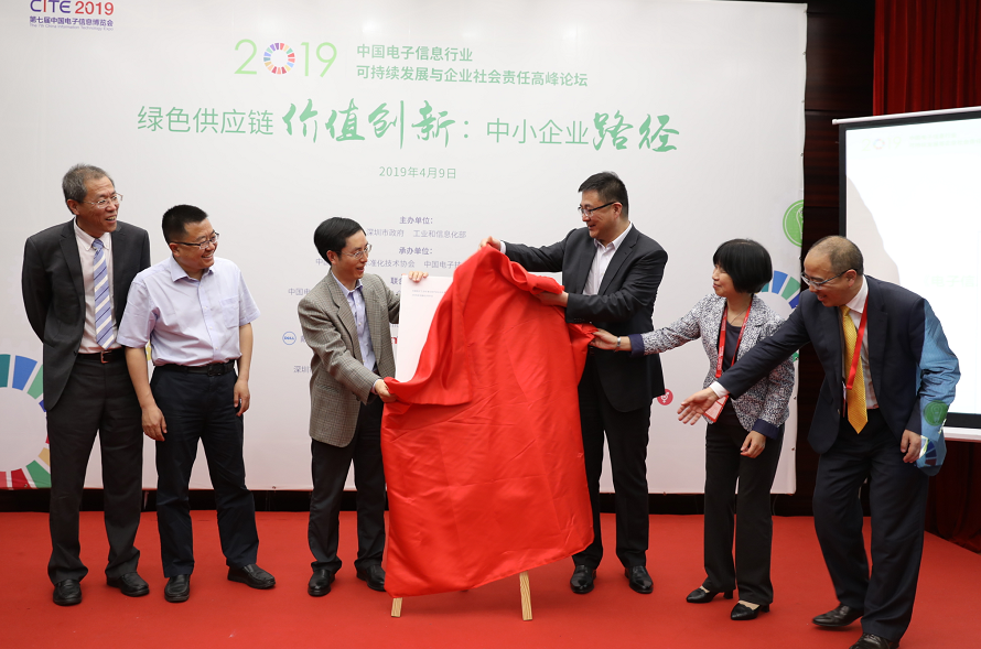 與會嘉賓為《電子信息行業(yè)綠色供應鏈最佳實踐2019》發(fā)布揭幕