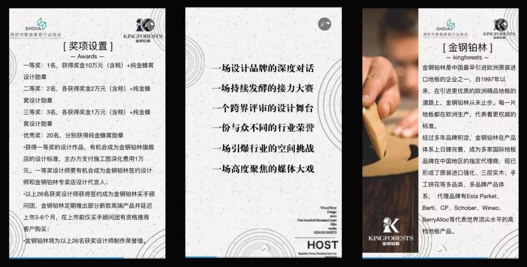 行業(yè)協(xié)會(huì)聯(lián)手中國(guó)最早引進(jìn)歐洲原裝進(jìn)口的地板企業(yè)金鋼鉑林,利用其在寶能第一空間的旗艦店即將啟幕的機(jī)會(huì),設(shè)置十萬元的現(xiàn)金大獎(jiǎng)來舉辦賽事,就是要推動(dòng)行業(yè)設(shè)計(jì)力量的縱深發(fā)展。