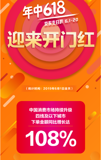 深圳新聞網(wǎng)2019年6月3日訊 6月1日零時(shí)剛過(guò),京東后臺(tái)銷(xiāo)售數(shù)據(jù)顯示訂單量就呈現(xiàn)出井噴狀態(tài),一年一度的京東618全球年中購(gòu)物節(jié)正式開(kāi)啟。京東大數(shù)據(jù)顯示,6月1日全天四線(xiàn)及以下城市下單金額同比增長(zhǎng)達(dá)108 %。