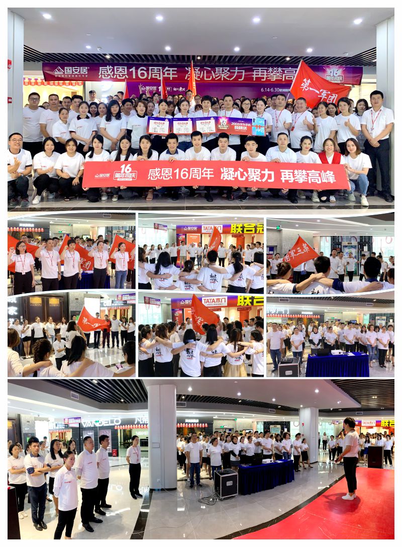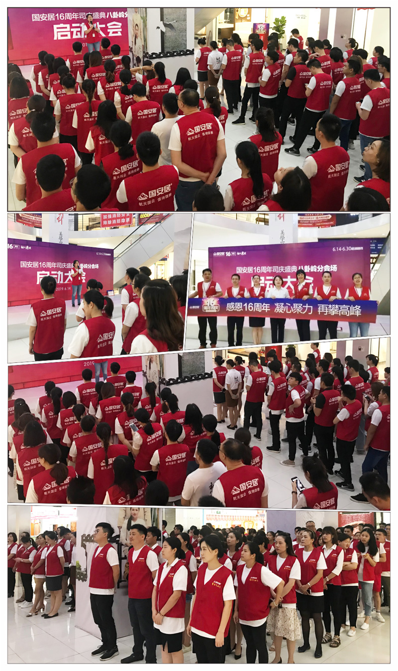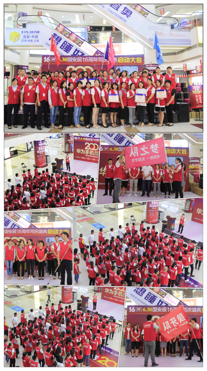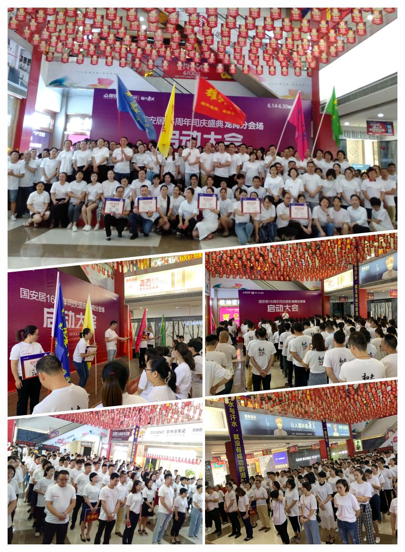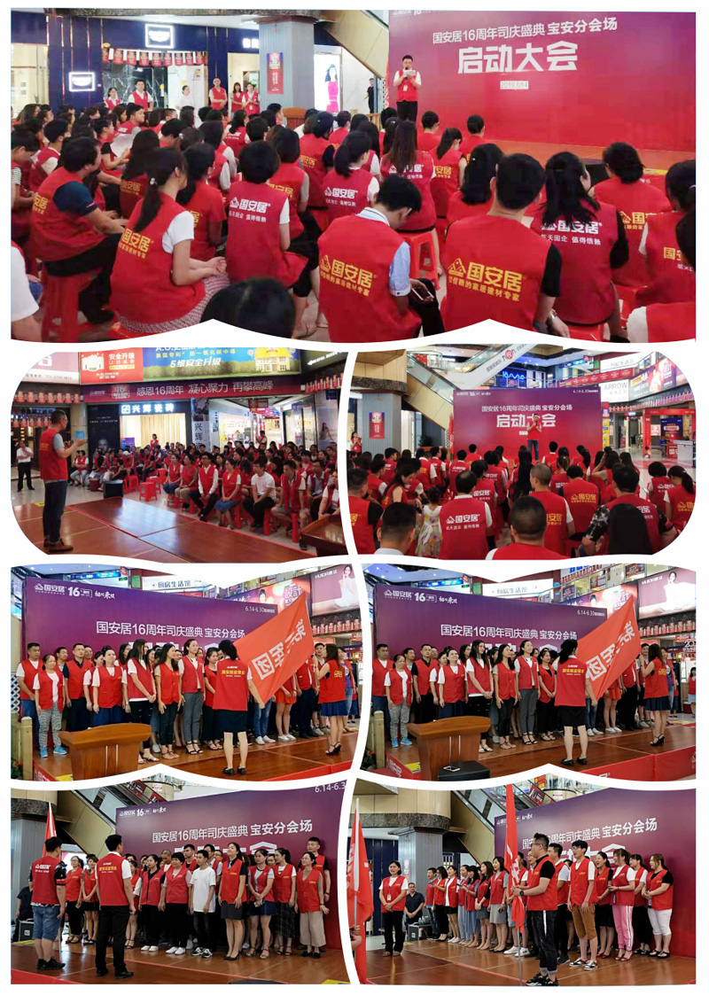 6月13日-14日,國(guó)安居“16周年司慶”啟動(dòng)大會(huì)在國(guó)安居深惠門(mén)店火熱舉行,800家品牌商家的銷售精英、員工代表、熱心市民等近萬(wàn)余人共同見(jiàn)證了這一意義非凡的時(shí)刻。參與者身著統(tǒng)一服裝,早早就聚集在商場(chǎng)中庭,所有人都把笑容掛在臉上,展現(xiàn)出自己最陽(yáng)光、最開(kāi)心、最具活力的一面。