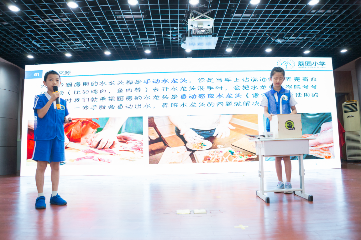 路演階段更是精彩紛呈,如:荔園小學(xué)通新嶺校區(qū)的“廚用智能感應(yīng)水龍頭”、明德實(shí)驗(yàn)學(xué)校碧海校區(qū)的“天臺(tái)智能晾曬房”、上步小學(xué)的“智能鼠標(biāo)”、華富小學(xué)的“室內(nèi)照明監(jiān)測(cè)盒”等眾多創(chuàng)意新奇的作品。