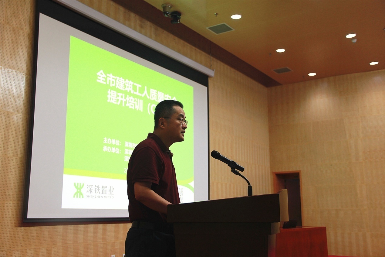 深圳市住房和建設(shè)局建筑市場和招標(biāo)投標(biāo)監(jiān)管處副處長董亮首先對(duì)一線工人表示親切的慰問,并對(duì)深圳地鐵置業(yè)集團(tuán)積極響應(yīng)政府號(hào)召,扎實(shí)落實(shí)工人安全質(zhì)量培訓(xùn)工作表示肯定。本次培訓(xùn)是市住建局建筑工人質(zhì)量安全培訓(xùn)提升工作方案的重要組成部分,接下來將在全市全面推行A、B、C、D、E五類培訓(xùn)。由政府、企業(yè)、協(xié)會(huì)、培訓(xùn)機(jī)構(gòu)四方力量共同攜手推進(jìn)崗前崗后、場內(nèi)場外、線上線下培訓(xùn)教育工作。今后,未經(jīng)過系統(tǒng)教育培訓(xùn)的工人將禁止進(jìn)入深圳市建筑市場。