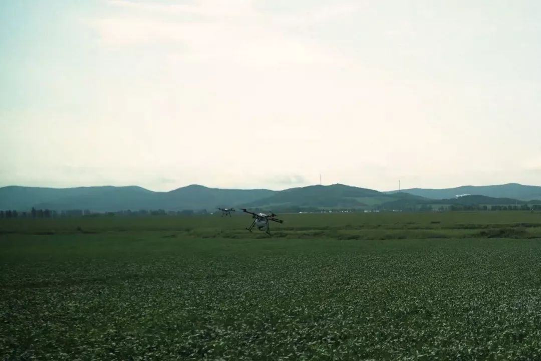 開(kāi)班儀式前,參會(huì)領(lǐng)導(dǎo)、專家及各省市參會(huì)代表現(xiàn)場(chǎng)觀摩位于敦化市鴻發(fā)現(xiàn)代生態(tài)農(nóng)場(chǎng)的全國(guó)生物食誘劑防控大豆食心蟲(chóng)技術(shù)試驗(yàn)示范區(qū),在示范區(qū)現(xiàn)場(chǎng)觀摩無(wú)人機(jī)噴灑生物食誘劑。