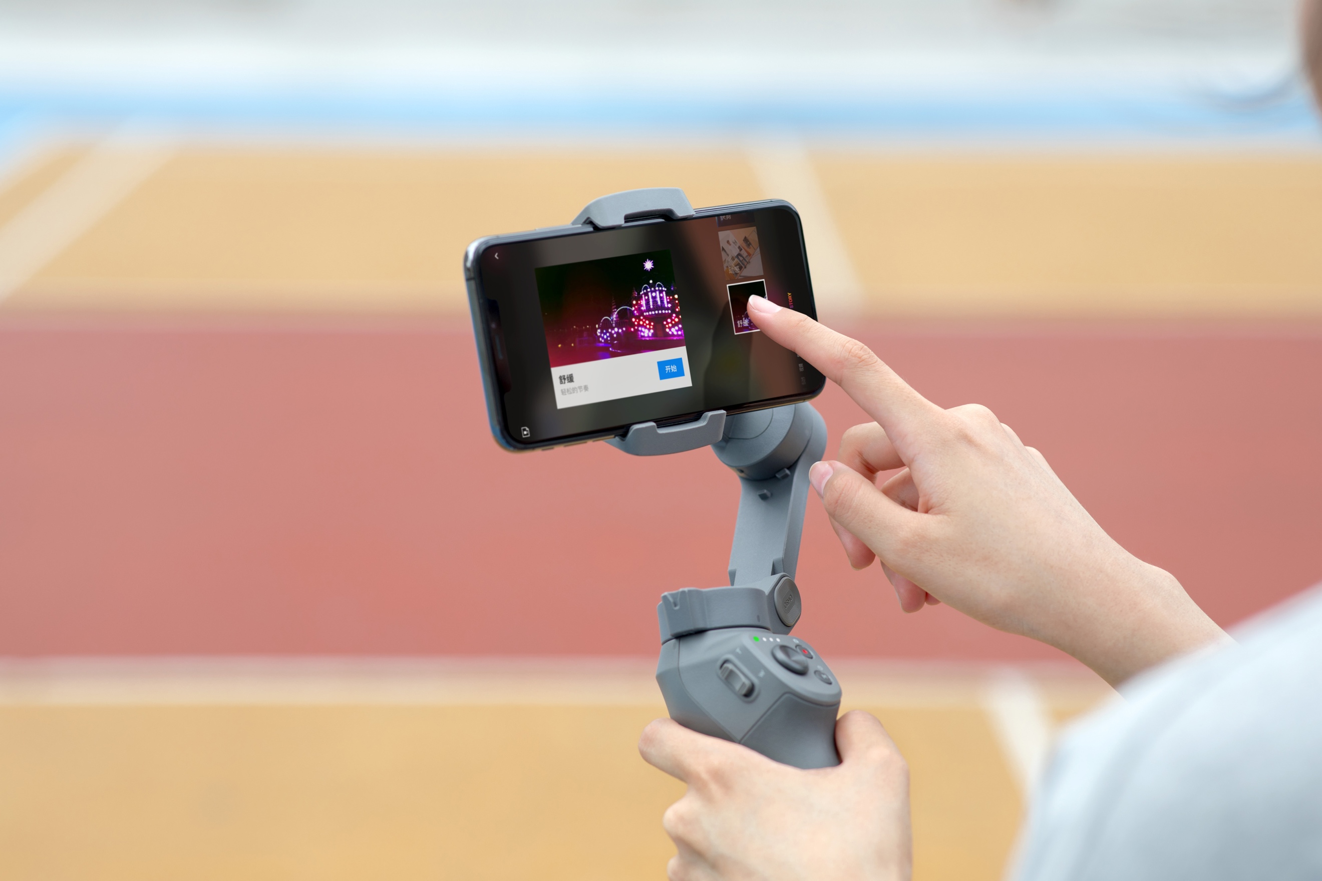 靈眸手機云臺3創(chuàng)造性地將常用功能集合成“一鍵操作”。強大的 M按鍵可切換拍照錄像、橫豎拍攝等多種模式,模式切換按鍵可以觸發(fā)智能跟隨3.0以及切換前后攝像頭、云臺模式等多種功能。結(jié)合預設(shè)快捷菜單欄,配合搖桿, M按鍵還可快速選擇多項拍攝功能。而利用機身側(cè)面的變焦滑桿不僅可以控制鏡頭變焦,還可通過 App控制變焦速度,營造趣味短片。相較于云臺工作狀態(tài)下在手機界面操作的不便,靈眸手機云臺3獨創(chuàng)的單手操控模式把手機攝像中需要的大部分操作匯集于兩根手指即能完成。這給手機視頻拍攝帶來了全新的交互體驗。