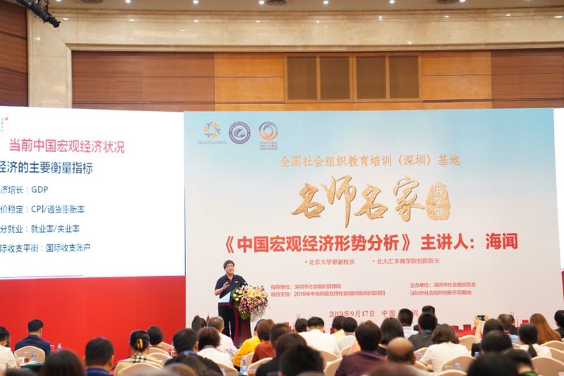 據(jù)介紹,總會依托民政部社會組織服務(wù)中心授予的“全國社會組織教育培訓(深圳)基地”設(shè)立“名師名家講學堂”,設(shè)立兩年多來先后邀請了王石、馬蔚華、馮侖、唐杰、印順等眾多大咖“頭腦風暴”、分享智慧,得到社會各界的普遍認可。今年以來,作為改革排頭兵的深圳再次被委以重任,確定為中國特色社會主義先行示范區(qū),深圳面臨著面臨著全新的挑戰(zhàn)和巨大的機遇??倳鳛椤皡f(xié)會的協(xié)會”,深諳深圳社會組織及企業(yè)的迫切需求,為此講學堂特別邀請深圳匯豐商學院創(chuàng)院院長海聞教授為大家分析中國的宏觀經(jīng)濟形勢,幫助深圳企業(yè)家登高望遠、把握形勢、尋找方法、積極“迎戰(zhàn)”,增強他們憂患意識的同時也增強其克服困難的信心。
