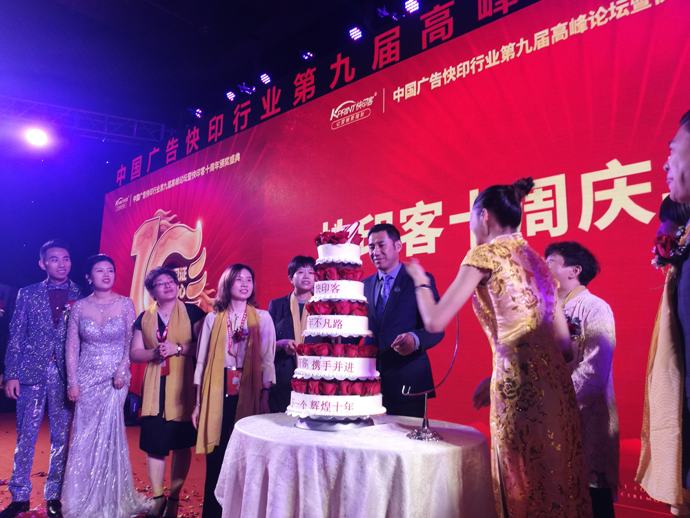 2019年,也是快印客成立的第十年,作為廣告快印行業(yè)新模式的創(chuàng)造者和領(lǐng)航者,本屆高峰會“十年見證,不忘初心”為主題,向行業(yè)展示了快印客十年取得的豐碩成果,共同開啟下一個黃金十年,并向過去一年里為行業(yè)做出突出貢獻的公司和個人頒發(fā)了榮譽獎項。