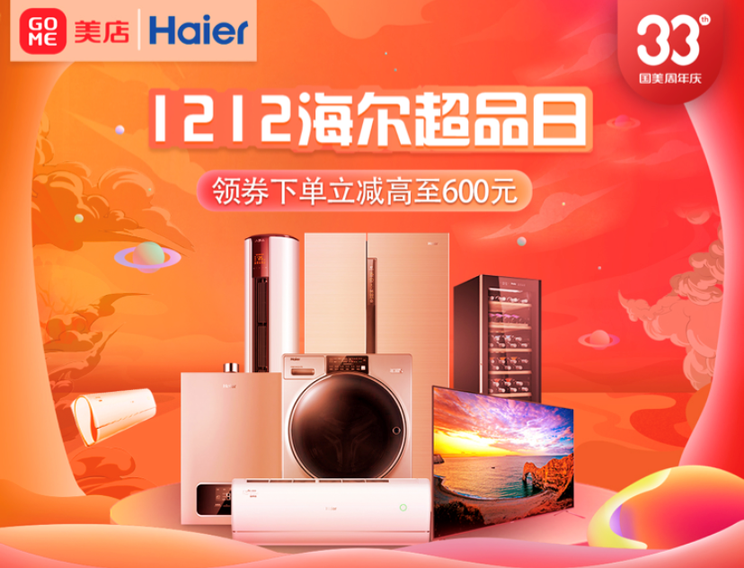 12月12日-15日,33周年生日之際,國美與海爾再度攜手,國美美店帶來1212海爾超級品牌日活動(dòng),涵蓋了海爾冰箱、洗衣機(jī)、空調(diào)、電視、廚房衛(wèi)浴等多個(gè)品類豐富產(chǎn)品,多重優(yōu)惠福利、六大承諾保障、延保清洗服務(wù),其中多個(gè)年度爆款值得期待。