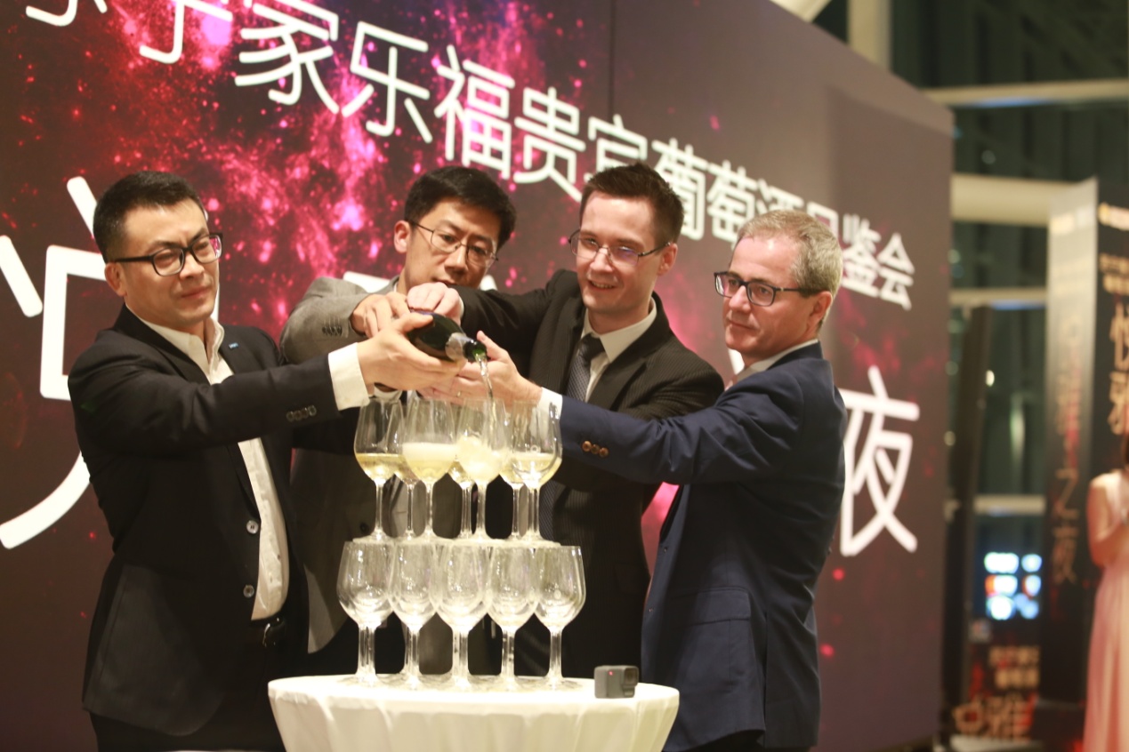 當(dāng)天,家樂福中國區(qū)副總裁、華南區(qū)總裁薛鵬,蘇寧易購華南區(qū)執(zhí)行副總裁、深圳大區(qū)總經(jīng)理戴馮軍,家樂福中國區(qū)商品副總裁馬邱(Matthieu HOUSSAIS),杭州鼎世總裁樂安華(Erwann LEMOIGNE)出席了活動并致辭。現(xiàn)場展出的100多種葡萄酒,大部分來自于法國,價格從幾十元至幾萬元,滿足不同層次的消費需求。