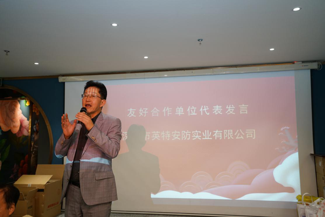 晚宴上,學(xué)會(huì)表彰了6家友好合作單位以資感謝支持,并邀請(qǐng)了其中的來自深圳市英特安防實(shí)業(yè)有限公司閆建國總經(jīng)理代表發(fā)言。