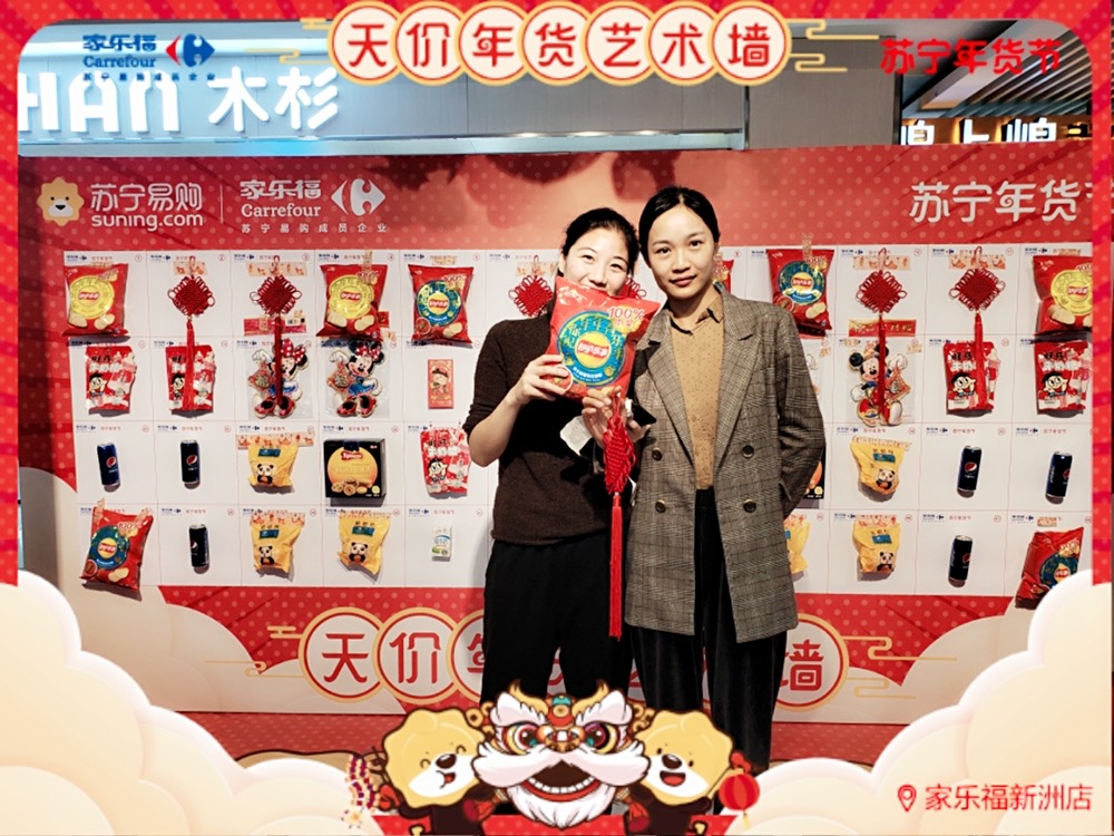 雖說活動創(chuàng)意來源于"天價香蕉",但家樂福華南區(qū) 送出 的福利可是如假包換。顧客們憑購物小票即可參與抽獎,德芙巧克力禮盒、丹麥藍罐曲奇、樂事新春全家桶、錦鯉年糕、對聯(lián)紅包福袋、旺仔牛奶糖、中國結……年貨好物一樣接一樣! 而且每樣產品都包含著新年的美好祝愿。