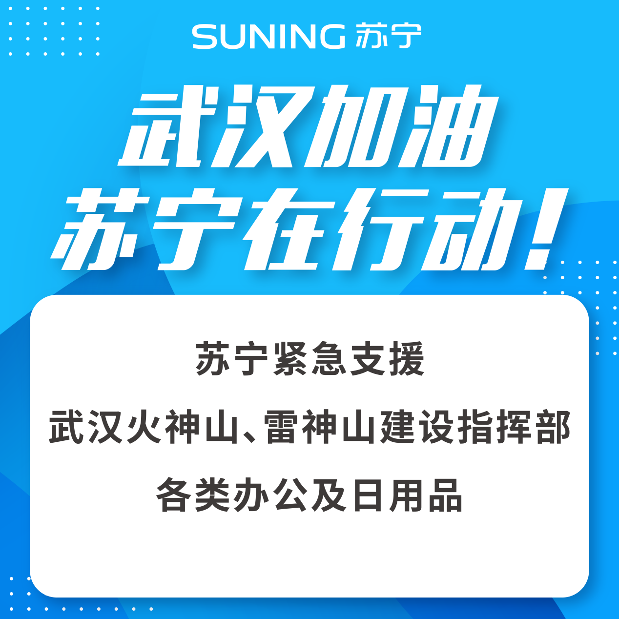而在疫情防控一線,自春節(jié)期間肺炎疫情發(fā)酵以來(lái),蘇寧迅速行動(dòng),在武漢組建了支援團(tuán)隊(duì)及時(shí)響應(yīng)一線需求,通過(guò)定向向武漢火神山、雷神山醫(yī)院,以及武漢和周邊地區(qū)的醫(yī)療、公安等機(jī)構(gòu)進(jìn)行捐贈(zèng),緊急支援消毒水、口罩、防護(hù)服、醫(yī)用手套、電器、電腦、日用品等一系列物資,以解疫區(qū)燃眉之急。