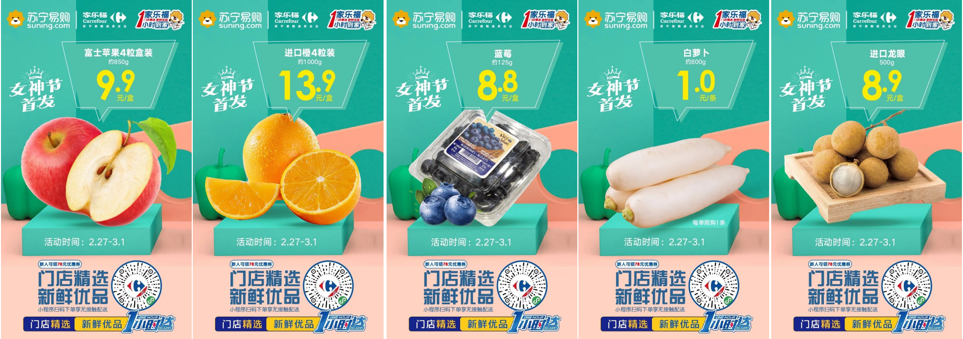 此時(shí)此刻,提高自身免疫力才是關(guān)鍵。蔬果家族可以說(shuō)是生鮮里的寶藏品類了。2月27日至3月1日,多款維生素滿滿的健康蔬果,驚爆價(jià)低至1元!富士蘋果4粒裝9.9元/盒、進(jìn)口橙四粒裝13.9元/盒、藍(lán)莓8.8元/盒、白蘿卜1元/條、進(jìn)口龍眼8.9元/盒。
