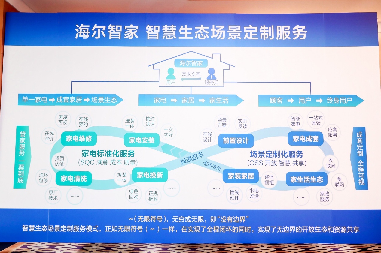 為滿足物聯(lián)網(wǎng)時(shí)代的用戶需求,海爾圍繞“用戶驅(qū)動(dòng)”的核心目標(biāo)持續(xù)推動(dòng)物聯(lián)網(wǎng)轉(zhuǎn)型,通過(guò)模式創(chuàng)新再造服務(wù)流程、鼓勵(lì)服務(wù)兵主動(dòng)創(chuàng)業(yè),打造了海爾智慧云服務(wù)體系,并創(chuàng)新六大在線服務(wù)確保信息透明的誠(chéng)信服務(wù)。而隨著海爾“智家云”戰(zhàn)略推進(jìn),海爾服務(wù)基于場(chǎng)景生態(tài)率先實(shí)現(xiàn)了定制成套服務(wù)在用戶端落地,不僅為用戶體驗(yàn)帶來(lái)了全方位保障,也在行