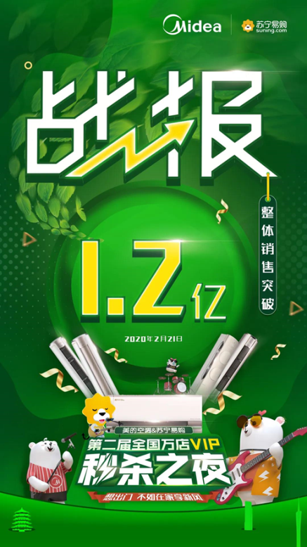 一季度受疫情影響,不僅消費需求受重創(chuàng),線下活動也受到?jīng)_擊。在此背景下,蘇寧美的迅速調(diào)整模式,發(fā)力直播秒殺、打通雙線銷售。2月21日,蘇寧聯(lián)合美的空調(diào)舉辦的第二屆“全國萬店微信秒殺之夜”結(jié)合直播和微信秒殺,整體銷售突破1.2億。4月,雙方不僅邀請到“好物推薦官”柳巖帶貨,更推出“百強星主播大賽”,借助直播平臺將門店優(yōu)質(zhì)導購培養(yǎng)成帶貨達人,再為家電營銷啟發(fā)新思路。