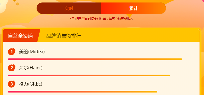 與此同時(shí),頭部品牌在蘇寧全渠道銷售暴增。截至當(dāng)日16時(shí),美的、海爾、格力占據(jù)品牌銷售額前三席位。其中,美的以品牌銷量、品牌銷售額、品牌加購(gòu)人數(shù)三冠的成績(jī)領(lǐng)跑榜單,同時(shí)橫跨空調(diào)、冰洗、品質(zhì)廚電等多品類品牌TOP榜,成為最大贏家。