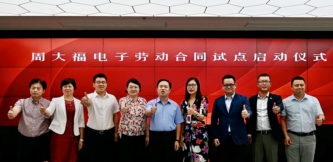 見圳客戶端·深圳新聞網(wǎng)2020年7月29日訊(記者蔡凱伊) 今日,國家首家試點工作——“周大福電子勞動合同試點項目”項目啟動會于深圳鹽田周大福集團(tuán)大廈舉行。在政府主管部門、深圳法大大網(wǎng)絡(luò)科技有限公司 、商業(yè)合作伙伴等各界人士的共同見證下,“創(chuàng)新勞動合同管理機(jī)制”的唯一入選項目,正式于周大福實行首家試點。